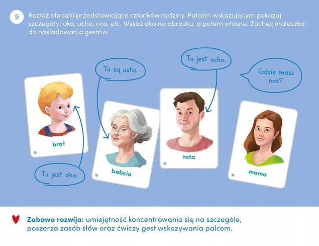 Wyjątkowa cecha: karty inspirują do różnorodnych edukacyjnych zabaw, których poziom trudności można dostosować do wieku i umiejętności dziecka.