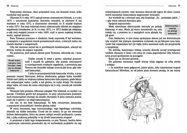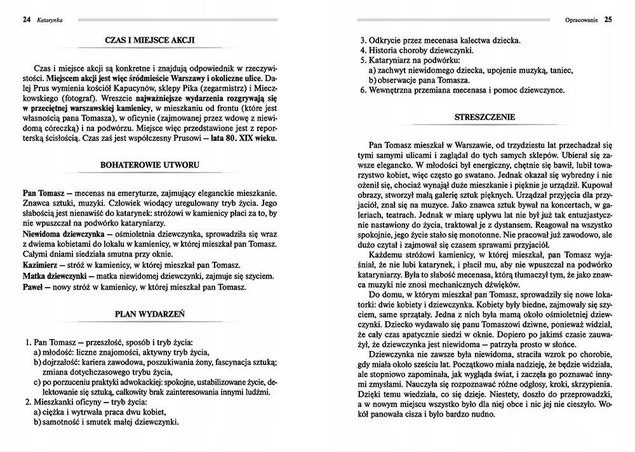 Wydanie Katarynki kompletne bez skrótów i cięć w treści. W tym wydaniu znajdziesz odpowiedzi na pytania z podręcznika - "pewniak na teście", czyli wskazanie zagadnień, które zwykle pojawiają się w pytaniach z danej lektury we wszelkich testach sprawdzających wiedzę, a także w podręcznikach i na klasówkach. Książka zawiera pełen tekst lektury. Na końcu książki zamieszczono opracowanie, w którym znajduje się bardzo szczegółowe streszczenie oraz drugie skrócone, ułatwiające szybkie przygotowanie się przed lekcją. Opracowanie zawiera ponadto plan wydarzeń, wnikliwie wyjaśnioną problematykę oraz szerokie charakterystyki bohaterów.