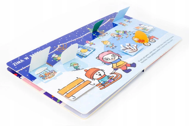 Kicia Kocia i Nunuś lubią zimę i zabawy na śniegu. Razem z nimi mali czytelnicy zobaczą, jak wygląda zima w mieście, w parku, a także na wsi i w lesie. Co robią zimą zwierzęta? Co jedzą? W co zimą bawią się dzieci? Tego czytelnicy dowiedzą się z tej książki – pełnej sekretów ukrytych pod okienkami!