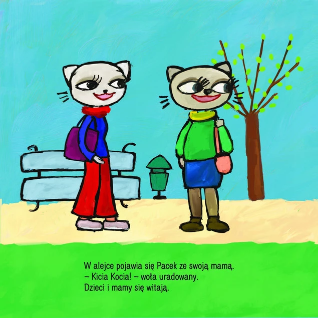 Kicia Kocia wybrała się z mamą do parku, żeby podziwiać budzącą się wiosnę, pąki na drzewach i pierwsze kwiatki. Spotkały tam Packa i jego mamę – przyjaciele razem zaczęli obserwować przyrodę. Znaleźli też chore zwierzątko, któremu udzielili pomocy.
