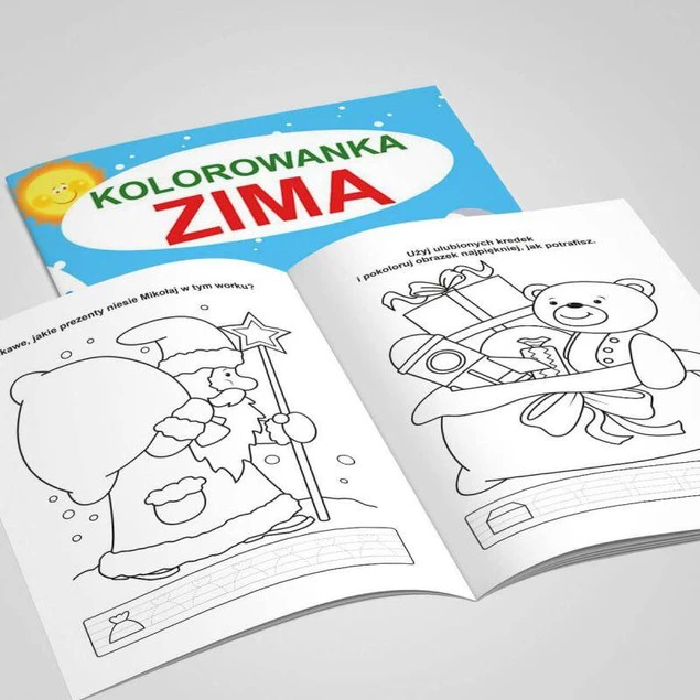 Wesoły bałwanek, Święty Mikołaj z workiem prezentów, zabawa noworoczna, narciarz, saneczkarz czy łyżwiarz – kolorowanka, odpowiednia zarówno dla dziewczynki, jak i dla chłopca, pozwala tworzyć wspaniałe prace plastyczne z typowymi dla zimy motywami. A pod każdym rysunkiem – szlaczek, dodatkowe zadanie, dzięki któremu Twoje dziecko utrwalali sobie podstawowe kształty.