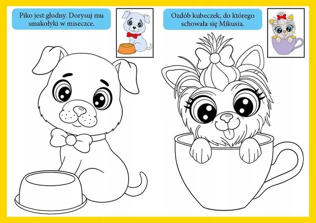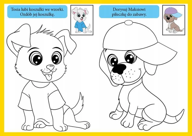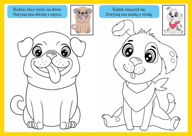 To sympatyczna kolorowanka dla najmłodszych, którzy uwielbiają psy. Znajdą w niej śliczne obrazki różnych piesków, które mogą pokolorować dowolnie lub według podanego wzoru.
