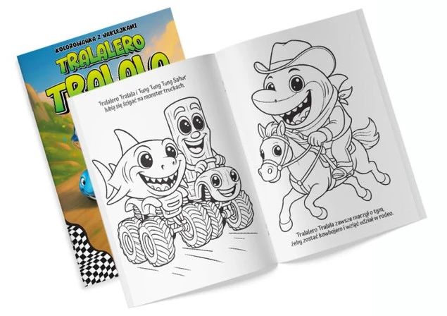Przygotujcie się na wyścig z Tralalero Tralalą i jego przyjaciółmi! Ta wesoła kolorowanka to aż 16 stron pełnych zabawy, które dziecko może ozdobić swoimi ulubionymi kolorami i wyjątkowymi naklejkami. Gotowi? Kredki w dłoń – czas na kolorową przygodę!