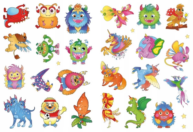 Kolorowanka z tatuażami fluo Magiczne stworki