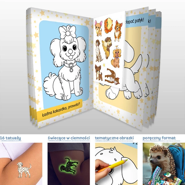 Złóż zapytanie o cenę hurtową produktu |Kolorowanka z tatuażami – świecą w ciemności! Pieski WYDAWNICTWO SKRZAT
