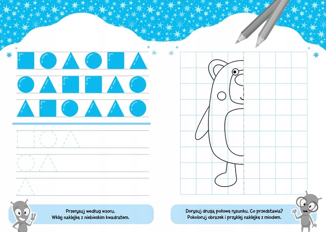 Ten kosmiczny zeszyt ćwiczeń pomoże najmłodszym w rozwijaniu spostrzegawczości, logicznego myślenia, sprawności manualnej i orientacji przestrzennej. Zadania są dostosowane do możliwości poznawczych dziecka, a kolorowe naklejki uatrakcyjnią zabawę!