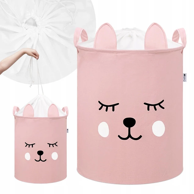 Kosz Pojemnik Na Zabawki Zamykany Ze Ściągaczem XL MIŚ RÓŻOWY SIPO BT035