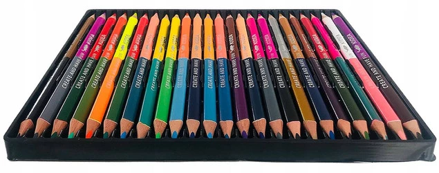 - wysokiej jakości kredki z glinki kaolinowej w drewnianej oprawie o trójkątnym przekroju