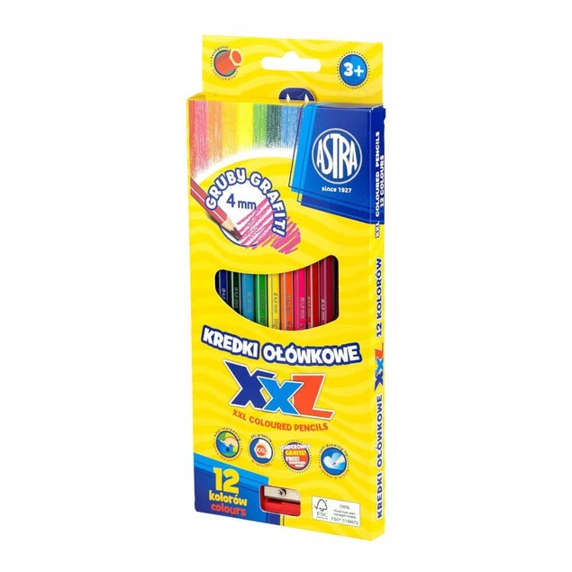 Kredki wykonane z drewna z certyfikatem FSC. Gruby grafit 4mm. Miękkie w użyciu, łatwe w temperowaniu. Heksagonalny kształt. Nie pylą, nie kruszą się. Doskonała jakość.