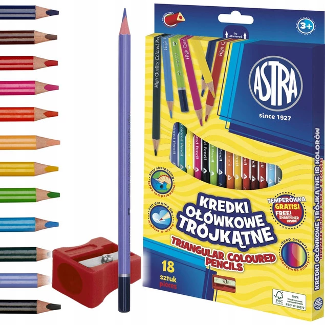 Kredki Ołówkowe Trójkątne Z Temperówką 18 Kolorów 3+ Astra