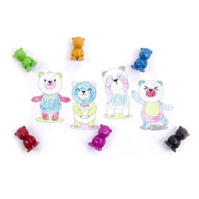 Kredki Świecowe Do Nauki Rysowania MISIE 6 Kolorów Kidea