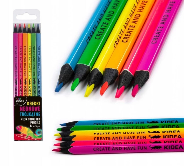 Kredki Trójkątne NEONOWE 6 Kolorów Kidea (1 szt.)