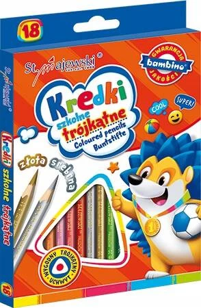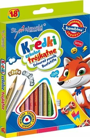 Opinie o Kredki Szkolne Ołówkowe Trójkątne 18 Kolorów + Złota i Srebrna Bambino