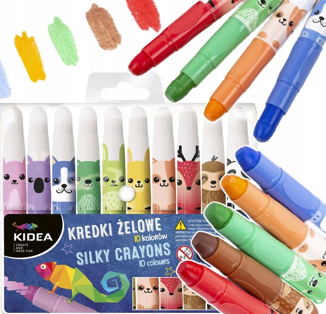 Kredki Żelowe 10 Kolorów Idealne Dla Maluchów Miękkie I Kryjące Kidea