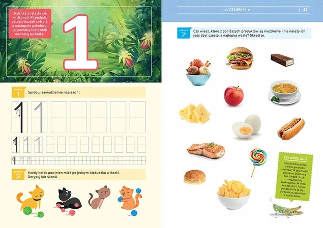 Całość podzielona jest na interesujące dzieci tematy: moje ciało, dom, sport, zwierzęta, przyroda, pojazdy, na budowie. Zarówno dziewczynki, jak i chłopcy, znajdą w niej coś ciekawego.