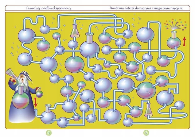 Labirynty to łamigłówki świetnie rozwijające umysł i wyobraźnię najmłodszych. Znalezienie właściwej drogi wśród poplątanych ścieżek to nie lada wyzwanie, wymagające skupienia, koncentracji i spostrzegawczości. Czasem dzieci będą musiały wydostać się z pułapki mniej lub bardziej skomplikowanych korytarzy, a niekiedy odkryć, która z dróg prowadzi do celu. W każdym z labiryntów czeka je mnóstwo zabawy i wrażeń, a kolorowe grafiki umilą czas spędzony z książeczką.