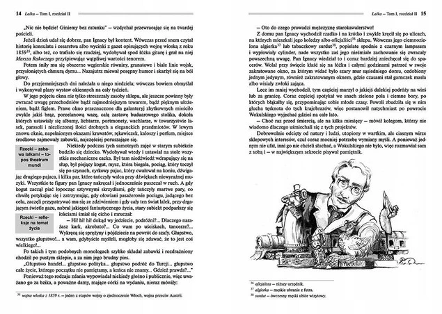 Wydanie Lalki kompletne bez skrótów i cięć w treści. W tym wydaniu znajdziesz odpowiedzi na pytania z podręcznika - "pewniak na teście", czyli wskazanie zagadnień, które zwykle pojawiają się w pytaniach z danej lektury we wszelkich testach sprawdzających wiedzę, a także w podręcznikach i na klasówkach. Książka zawiera pełen tekst lektury. Na końcu książki zamieszczono opracowanie, w którym znajduje się bardzo szczegółowe streszczenie oraz drugie skrócone, ułatwiające szybkie przygotowanie się przed lekcją. Opracowanie zawiera ponadto plan wydarzeń, wnikliwie wyjaśnioną problematykę oraz szerokie charakterystyki bohaterów.
