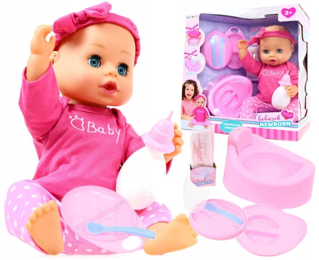 Wyjątkowa lalka bobasek, która pije i robi siusiu. Zatroszcz się o maleństwo karmiąc je oraz zmieniając pieluchy. Bobas ma, aż 43cm wzrostu! Na jego głowie znajduje się piękna, różowa kokardka. Bobasek ubrany jest w różową, dwuczęściową piżamkę - bluzeczkę i spodenki w groszki. Lalka posiada ruchome rączki, nóżki oraz główkę. Idealnie nadaje się do kąpieli. Gdy bobasek leży zamykają mu się oczka.