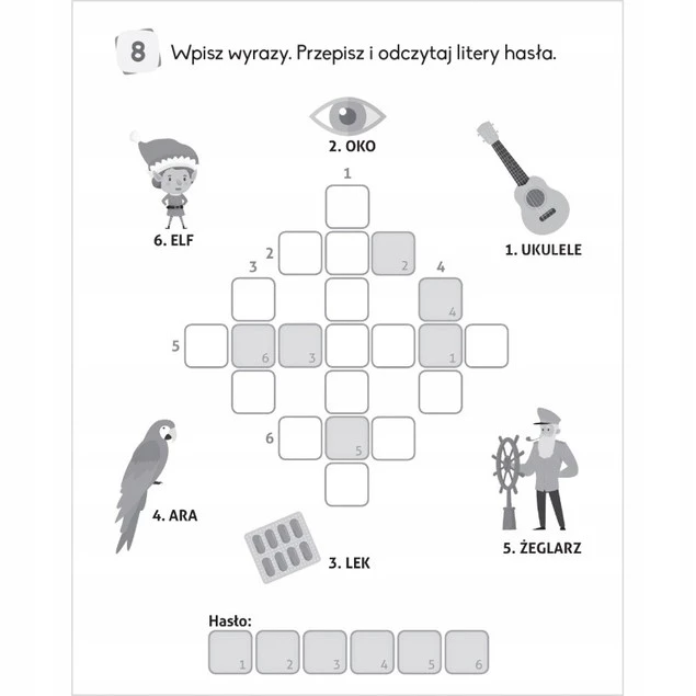 - Format: 11,5 x 14,5 cm; ilustracje czarno-białe, tekturowa podkładka, dołączony ołówek.