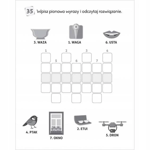 - Format: 11,5 x 14,5 cm; ilustracje czarno-białe, tekturowa podkładka, dołączony ołówek.