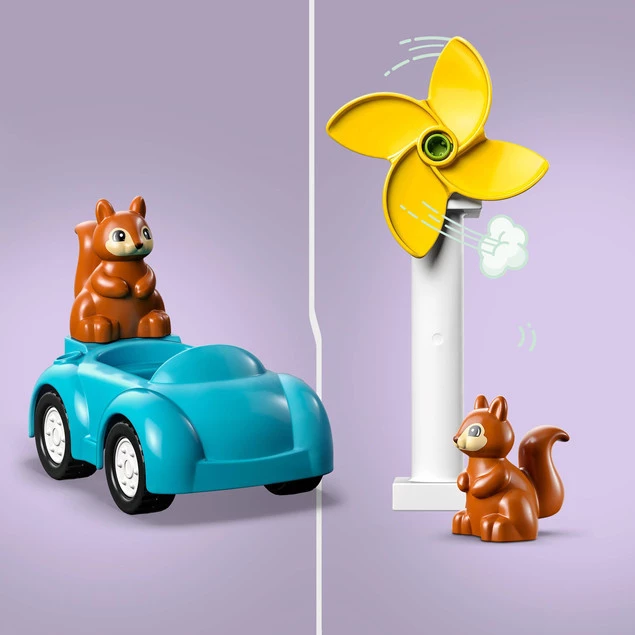 - Zabawka dla małych mechaników – kolorowy zestaw LEGO® DUPLO® Town Turbina wiatrowa i samochód elektryczny (10985) pozwala młodym fanom samochodów w wieku powyżej dwóch lat poznawać ekologiczny styl życia