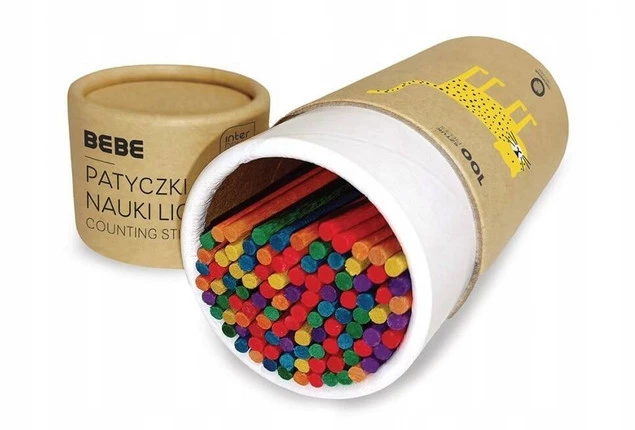 Drewniane patyczki idealne do nauki liczenia. Wykonane są z malowanego drewna. Patyczki znajdują w tekturowej tubie, która ułatwia ich przechowywanie.