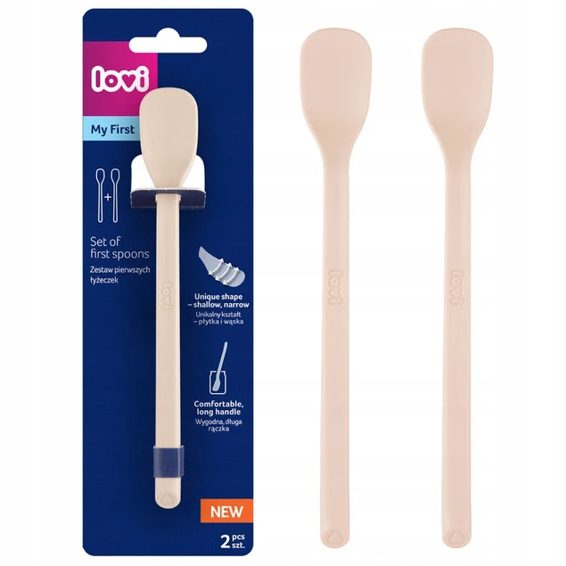 Pierwsza łyżeczka do karmienia LOVI jest płytka, wąska i twarda, dzięki czemu jest idealna na początek rozszerzania diety. Wygodna, długa rączka ułatwia rodzicom wyciąganie jedzenia ze słoiczka oraz karmienie, a dziecku pozwala na łatwe chwycenie łyżeczki. Łyżeczka LOVI posiada unikalny kształt, jak szpatułka laryngologiczna, aby ułatwić dziecku ściąganie jedzenia.