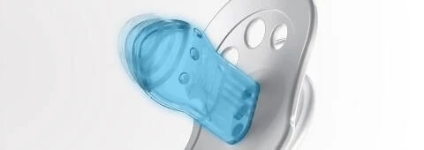 Profilowana tarczka Profilowany kształt umożliwia dziecku swobodne oddychanie przez nos; bezpieczny surowiec, z którego jest wykonana, nie zawiera bisfenolu A. | ![]() |