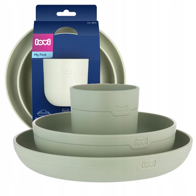 LOVI Zestaw Naczyń z Kubkiem MISECZKA TALERZYK KUBEK Pistacjowe 21/533_gre