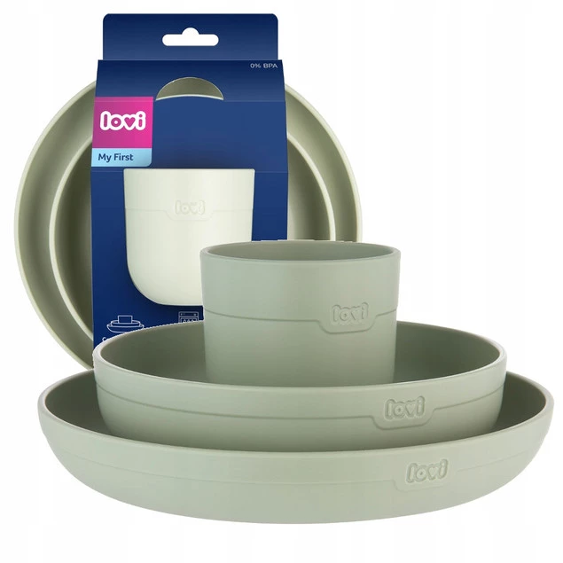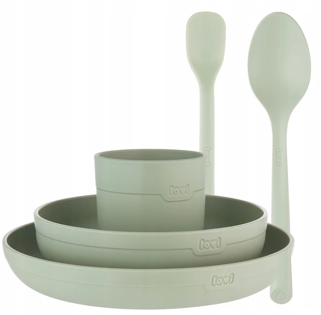 LOVI Zestaw Naczyń z Kubkiem + Pierwsza Łyżeczka i Łyżka Stołowa Pistacjowy