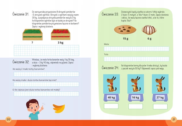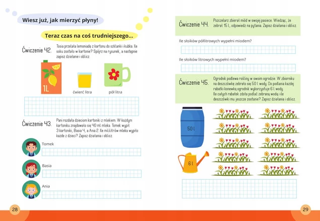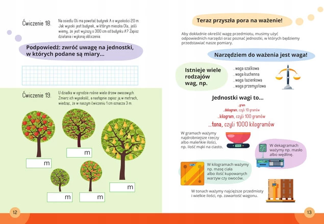 Książka obejmuje ćwiczenia na miarach i wagach.
