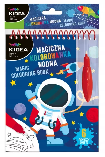 Magiczna wielorazowa kolorowanka wodna to super pomysł na prezent! Posiada aż 6 obrazków idealnych dla wszystkich miłośników kosmosu. W zestawie znajduje się pisak na wodę.