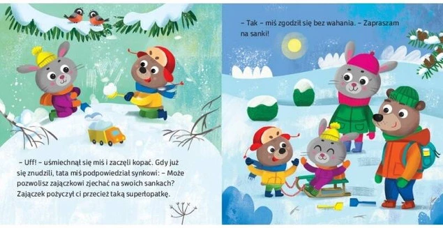 Misiowi, trudno dzielić się z innymi tym, co posiada, co wydaje mu się cenne i co lubi. Wkrótce jednak przekonuje się, że dzielenie się oraz pożyczanie i wymiana zabawek dostarcza wiele satysfakcji i radości, a przede wszystkim sprzyja nawiązaniu przyjaźni. Mały miś coś traci i coś zyskuje: odkrywa nowe emocje, które czynią go szczęśliwszym. Wszystkim dzieciom, które chciałyby poznać przygody misia, polecamy krótkie, ciepłe i pouczające historyjki. Książeczki są bezpieczne w użyciu i trwałe – na kartonie.