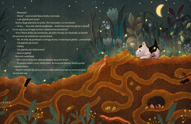 "Mamusiu, jak wielki jest świat?" to bajka, która zabiera dzieci w podróż pełną przygód oraz unikatowych przesłań. Każdy maluch uczy się poprzez rozmowy z dorosłymi. Właśnie dlatego Mama Kotka stara się wyjaśnić Kocurkowi, na czym polega życie. Czytelnicy towarzyszą im podczas niezwykle cennego spaceru, w trakcie którego kociątko nabywa nowe umiejętności. Książeczka odkrywa piękno dialogu oraz miłości między mamą a jej maleństwem. Ma też wyjątkowe ilustracje, które zachęcą pociechy do wspólnej lektury.