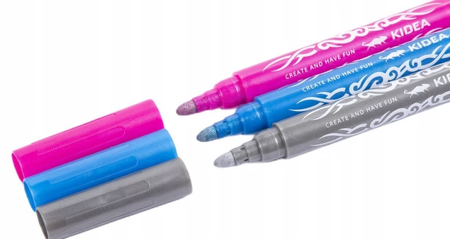 - 3 markery brokatowe (niebieski, różowy, srebrny)