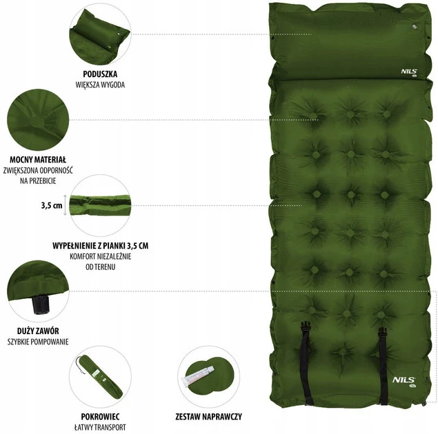 Mata Samopompująca Turystyczna Z Poduszką Materac Karimata NILS NC4018