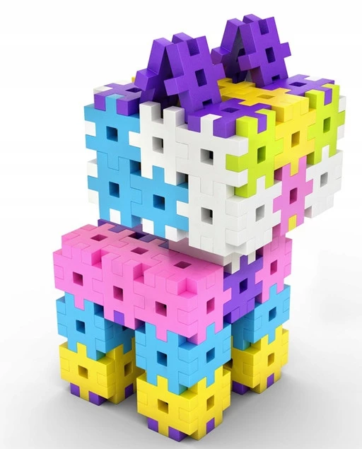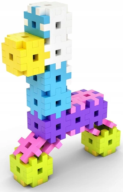 Tylko od wyobraźni dziecka zależy, w jaki kształt zamienią się podobne do puzzli płaskie elementy, łatwe w łączeniu jak w i demontażu. Tak duży zestaw zajmie dziecko na długie godziny, pozwoli też włączyć się w zabawę rodzicom i rodzeństwu.