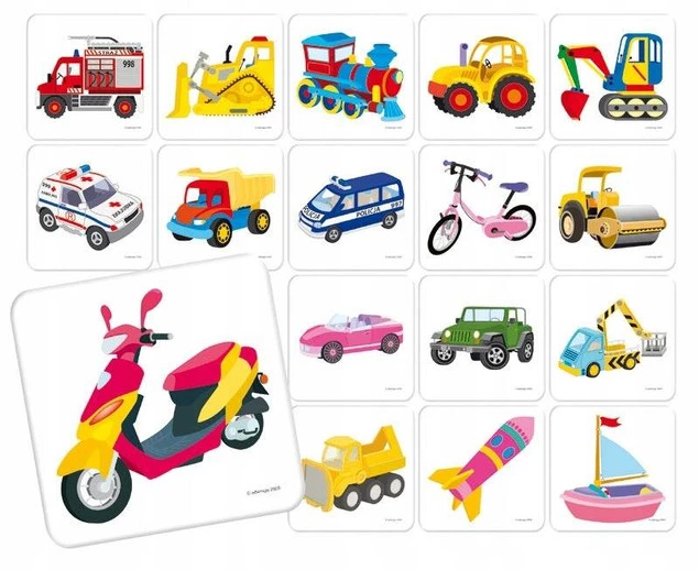 W pochmurne dni i wieczory MEMORY od ADAMIGO humor poprawi i całej rodzinie dostarczy mnóstwo frajdy. Tu nie ma ograniczeń wiekowych, dobrze będzie się bawił gracz starszy i ten całkiem młody. Fantastyczna gra wesołą zabawę gwarantuje podczas której każdy z graczy swoją pamięć potrenuje. Kto najwięcej spośród 24 par, pojazdów odnajdzie, ten wygrywa i od teraz może mistrzem MEMORY się nazywać!