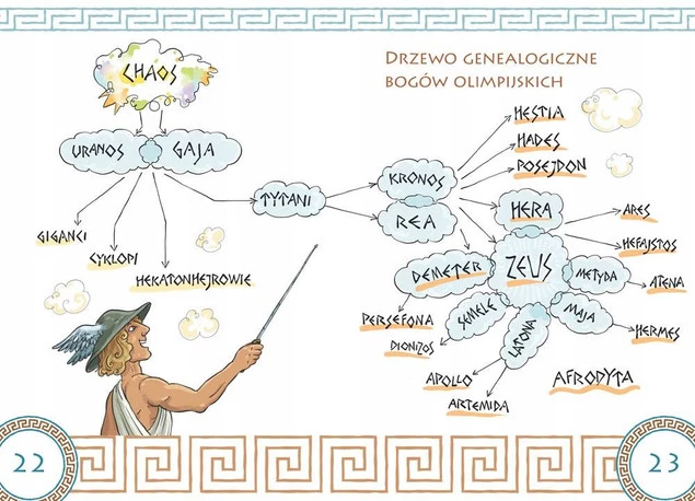 Mity greckie dla dzieci przybliżają najmłodszym czytelnikom świat greckich bogów, herosów, nimf, przedziwnych stworzeń i potworów. Dzięki tej książce dzieci mają szansę odbyć fascynującą podróż do starożytnych czasów, poznać panteon bogów greckich, zwiedzić Olimp, poznać historię Heraklesa, Tezeusza, śledzić tułaczkę Odyseusza. Napisana w przystępny sposób książka została wzbogacona licznymi ciekawostkami i informacjami o bogach, bohaterach, ich perypetiach oraz o związkach frazeologicznych związanych z mitologią.