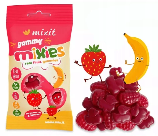 MIXIT Żelki Naturalne Owocowe Mixies TRUSKAWKA BANAN Bez Cukru 35g_2MIXIT Żelki Naturalne Owocowe Mixies TRUSKAWKA BANAN Bez Cukru 35g_3
