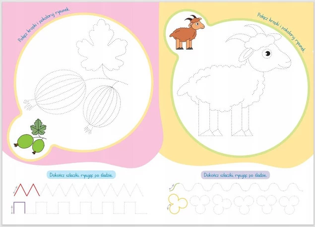 Rozbrykane zwierzaczki, fikuśne szlaczki i przeróżne smaczki. A strony barwne, niepowtarzalne i wyjątkowe. Rozgrzejmy rączkę. Nauczmy się estetyki i precyzji. Kolorujmy, rysujmy, ozdabiajmy i się bawmy...