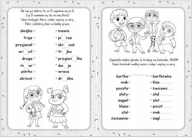 Wyzwanie dla bohatera, który trudnych słów się nie boi! Proste ćwiczenia pomogą dziecku przyswoić podstawy pisowni wyrazów z ó, u, ż, rz oraz h, ch, rymowane zasady ułatwią zapamiętanie typowych wymienności i końcówek, zaś sympatyczne rysunki do kolorowania zapewnią rozrywkę po dzielnym wykonaniu zadania. Świetna rozgrzewka przed lekcją ortografii!