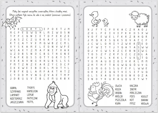 Wierszowane zagadki, obrazkowe wyszukiwanki, przysłowia oraz cała gama kreatywnych zabaw rozbudzają fascynację cudownym światem zwierząt, poszerzają wiedzę i ćwiczą spostrzegawczość. Są doskonałą gimnastyką dla mózgu, a także świetną zabawą!