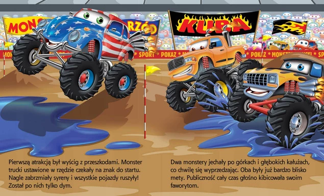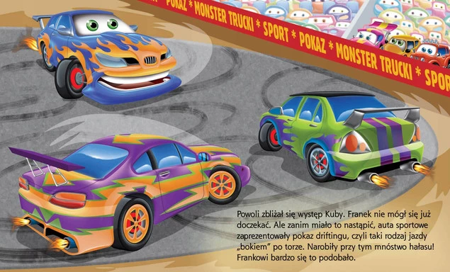 Poczytaj o sympatycznym czerwonym samochodziku Franku i dowiedz się, jakich przyjaciół poznał na pokazie Monster trucków!