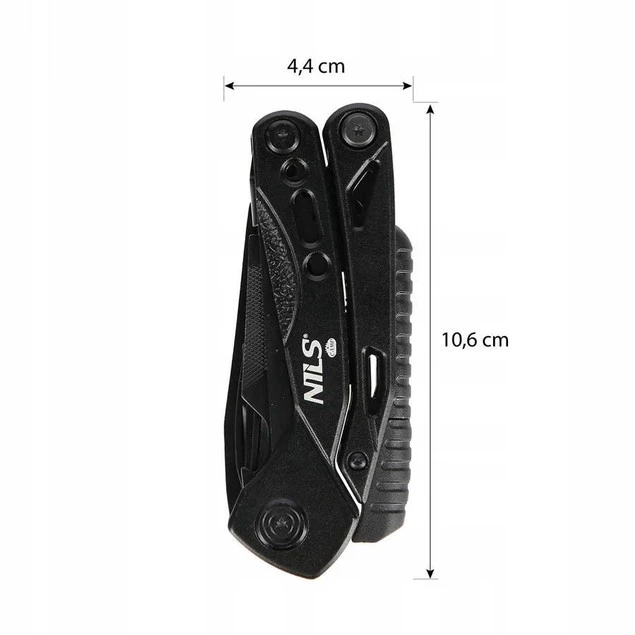 Multitool NC1744 marki NILS CAMP to wielofunkcyjny zestaw narzędzi dla majsterkowiczów, wędkarzy czy jako dodatkowe wyposażenie w domu lub w samochodzie. NC1744 posiada 12 niezbędnych narzędzi, które ułatwią funkcjonowanie podczas wypadów turystycznych oraz codziennych czynności.
