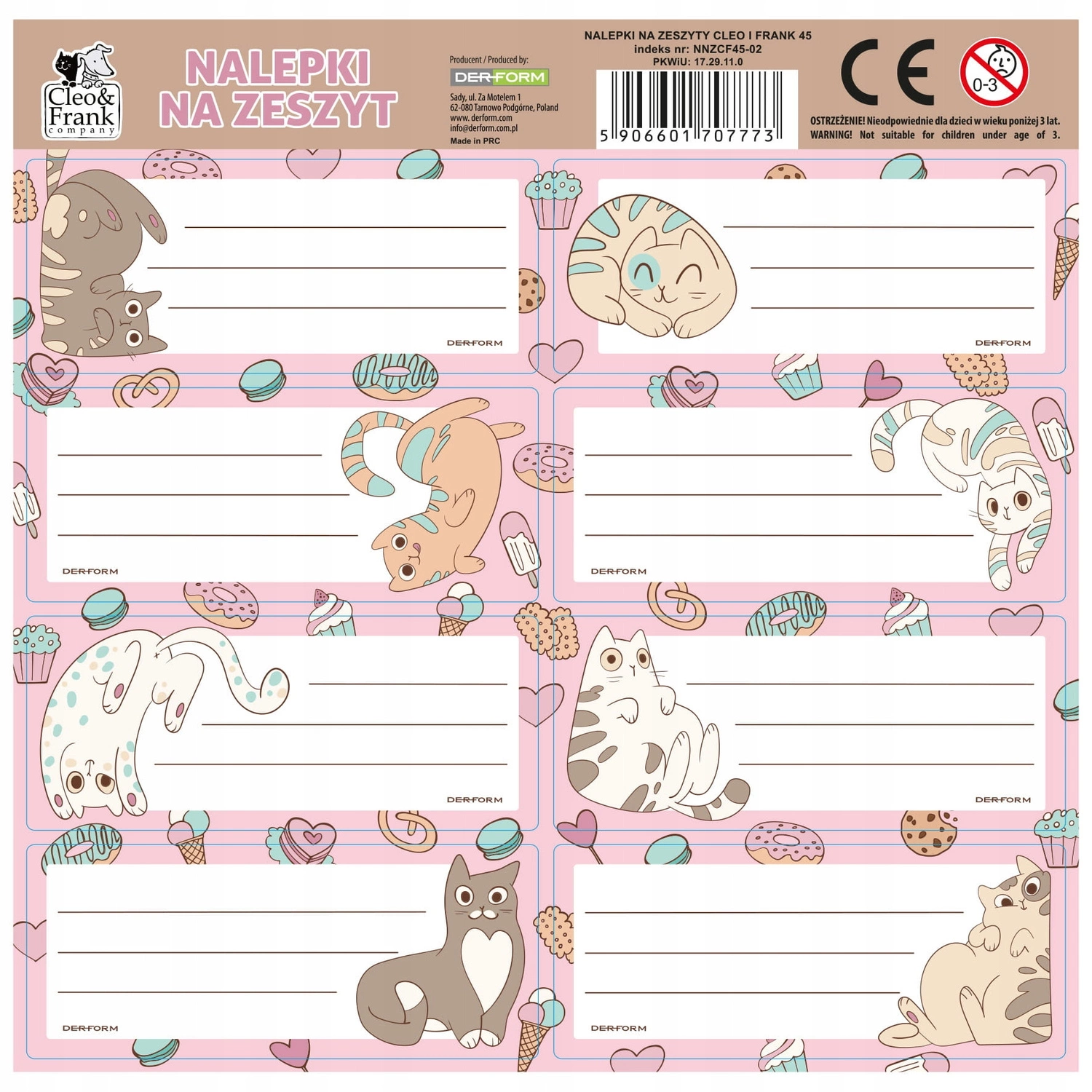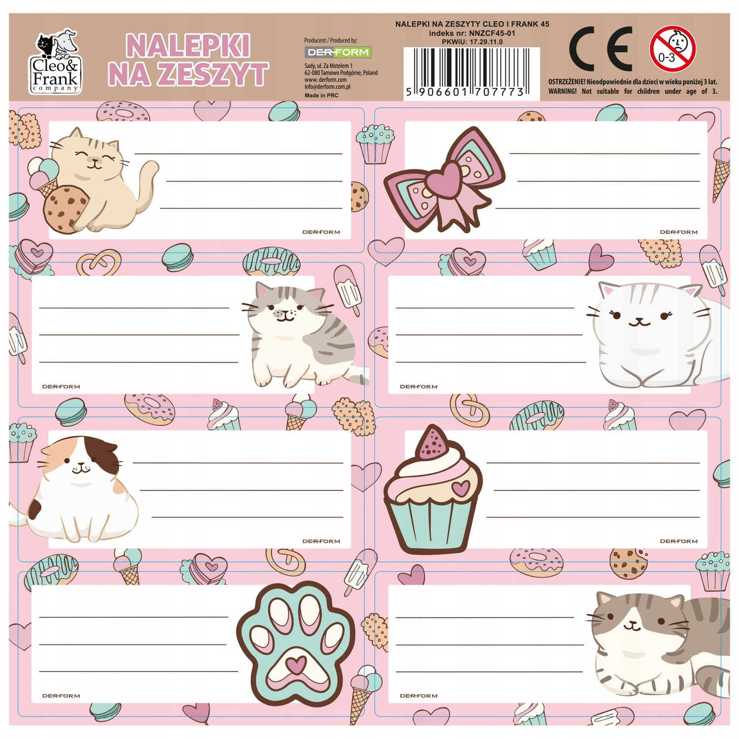 Złóż zapytanie o cenę hurtową produktu |Naklejki na zeszyt Cleo i Frank Kot 45 Derform