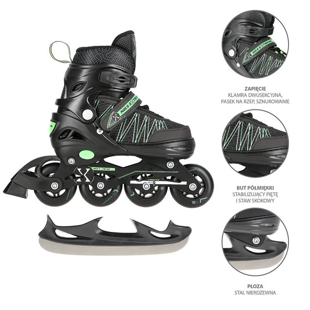 NILS Regulowane ROLKI ŁYŻWY 2w1 zielone NH11912
