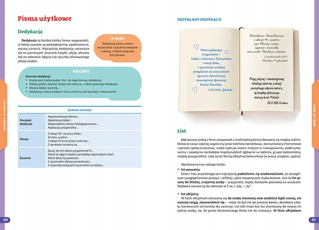 - Pisma użytkoweDedykacja List (list otwarty, list prywatny) Notatka Ogłoszenie Plan Podziękowanie Zaproszenie Życzenia