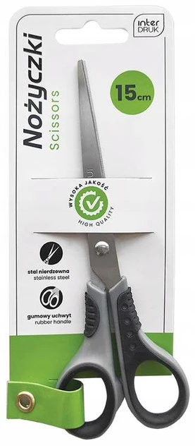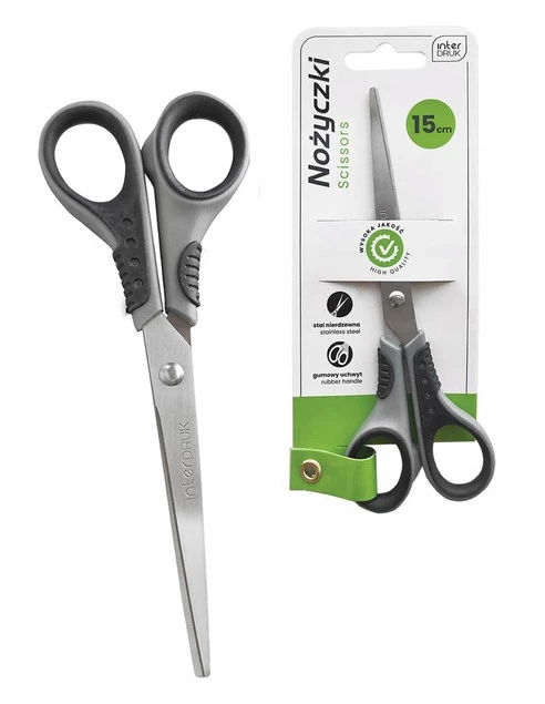 Opinie o Nożyczki Biurowe Szkolne 15cm Gumowy Uchwyt Interdruk