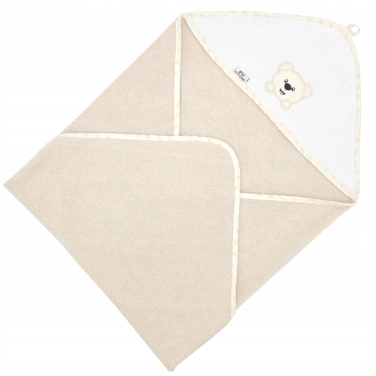 Okrycie Kąpielowe Z Kapturkiem Ręcznik 100x100 Bawełna PIASKOWE Bocioland